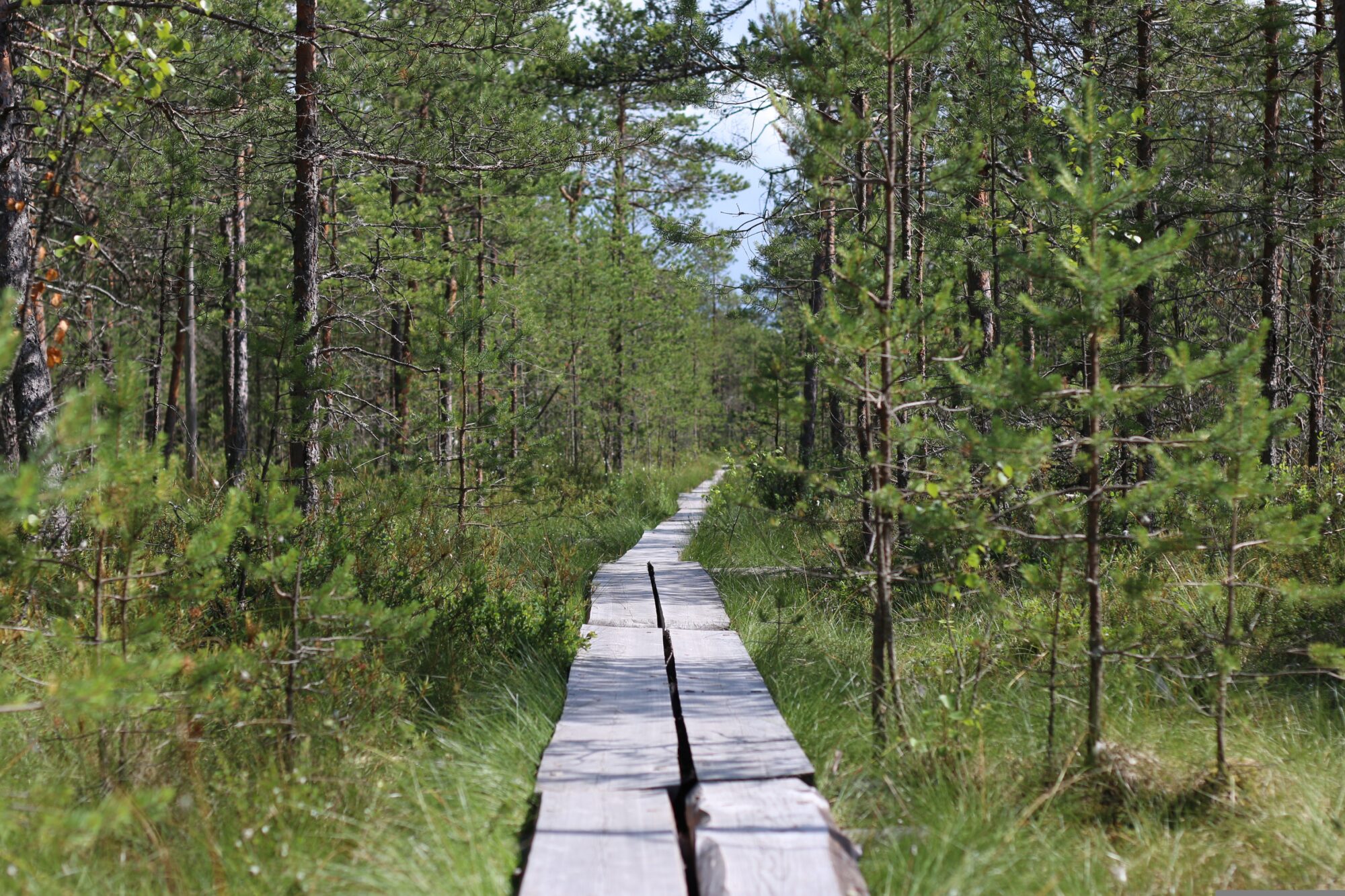 🌿 Pysy merkityillä reiteillä: Esimerkiksi pitkospuut suojelevat herkkää maaperää ja kasvillisuutta.